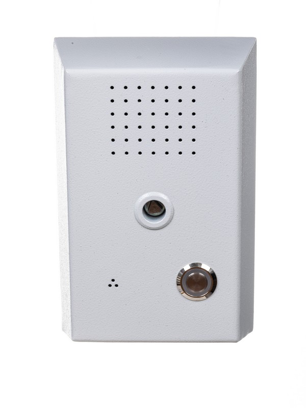 Пульт изготовлен в металлическом вандалозащищенном корпусе и предназначен для накладного крепления. Открытие корпуса осуществляется с помощью специального ключа, что исключает несанкционированное проникновение и умышленное повреждение устройства. На лицевой стороне пульта находятся кнопка вызова абонента, светодиодный индикатор включения пульта, динамик и встроенный микрофон. На внутренней стороне задней крышки пульта установлена печатная плата с клеммами для подключения устройств и регулировочными элементами. Чувствительность микрофона можно отрегулировать с помощью подстроечного резистора.